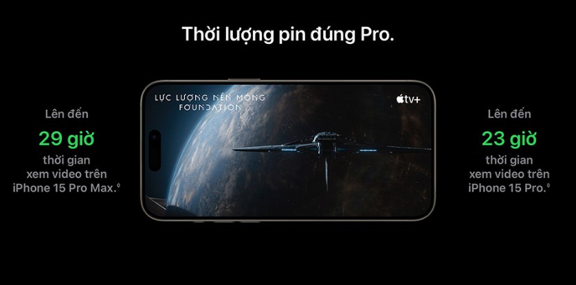 Dung lượng pin của iPhone 15 Pro không thay đổi nhiều so với thế hệ trước, nhưng nhờ tối ưu từ chip A17 Pro và hệ điều hành, thời gian sử dụng thực tế vẫn đủ đáp ứng một ngày với các tác vụ hỗn hợp.