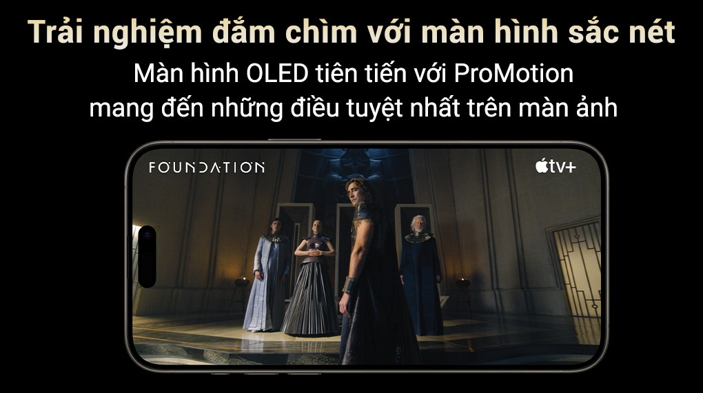 Tấm nền OLED trên iPhone 15 Pro có độ chính xác màu cao theo chuẩn DCI-P3, kết hợp với khả năng điều chỉnh tần số quét linh hoạt từ 1Hz đến 120Hz, giúp cân bằng giữa trải nghiệm mượt mà và tiết kiệm năng lượng.