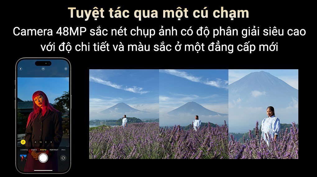 Hệ thống camera của iPhone 15 Pro tập trung vào xử lý hình ảnh bằng phần mềm thay vì chỉ nâng cấp phần cứng. Camera chính 48MP sử dụng cảm biến Quad-pixel, cho phép chụp mặc định ở 24MP để tối ưu chi tiết và dung lượng.