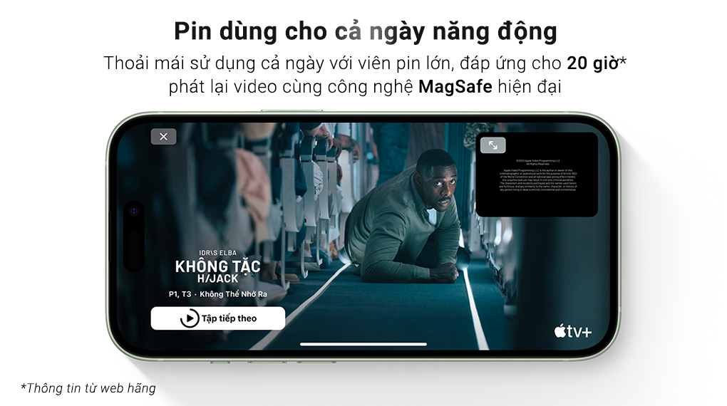 Apple tiếp tục cải tiến thời lượng pin trên iPhone 15, cho thời gian sử dụng kéo dài lên tới 20-22 giờ, đủ sức đồng hành cả ngày dài với người dùng.