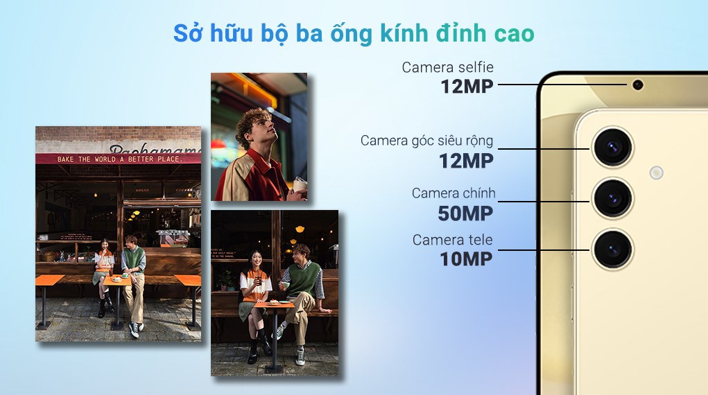 Hệ thống 3 camera gồm: chính 50MP + góc rộng 12MP + tele 10MP zoom quang 3×, hỗ trợ chụp ảnh chân thực, sắc nét với chi tiết cao ngay cả trong điều kiện ánh sáng phức tạp.